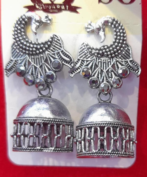 The earrings are made of silver, with a shimmering, reflective quality.